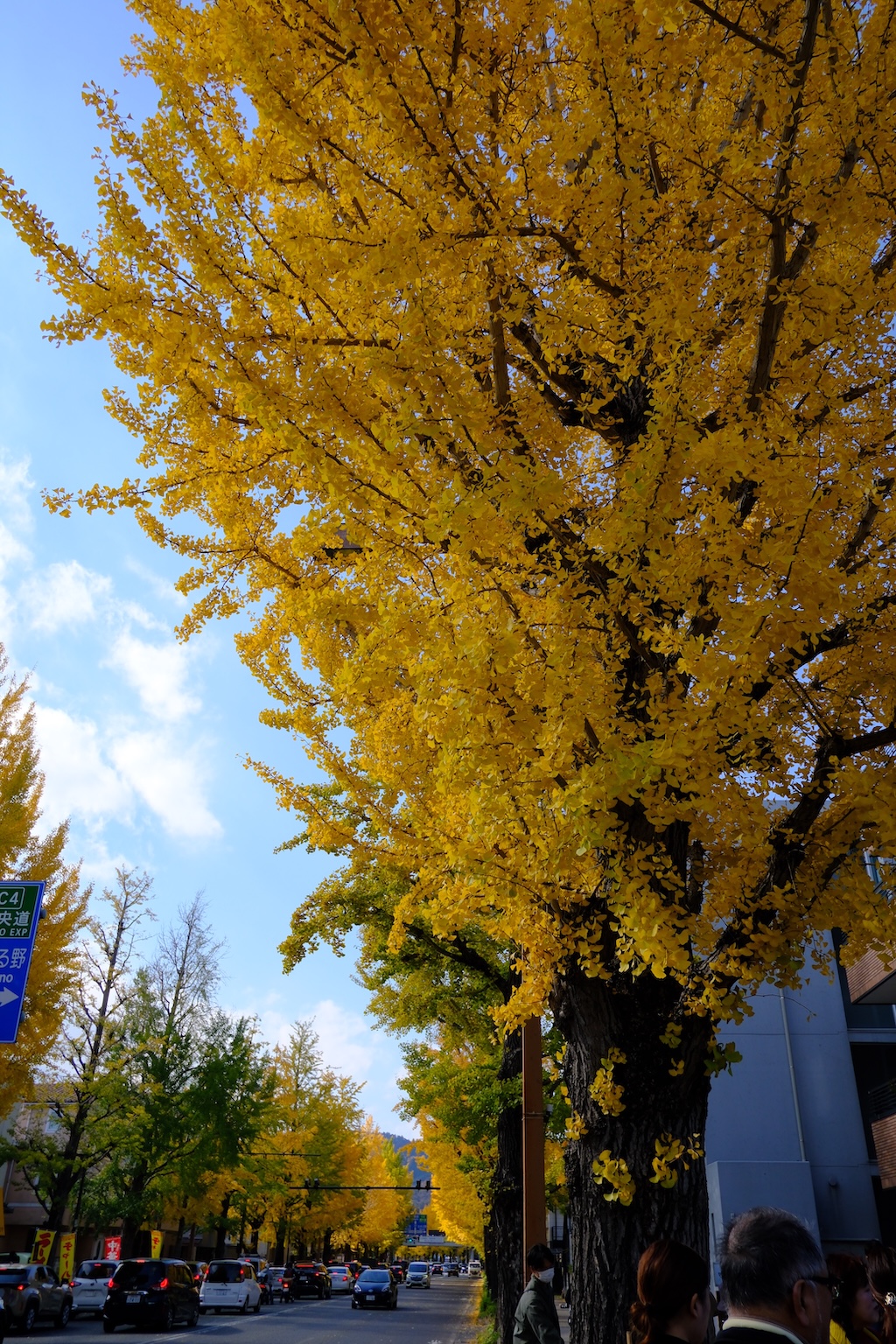 毎年行われているイベントに妻と行ってきました。イチョウの葉が黄色くなるこの時期に行われているお祭りには多くの人が来ていました。今年はまだ葉が緑色の木も多く、暖かなことがうかがわれます。